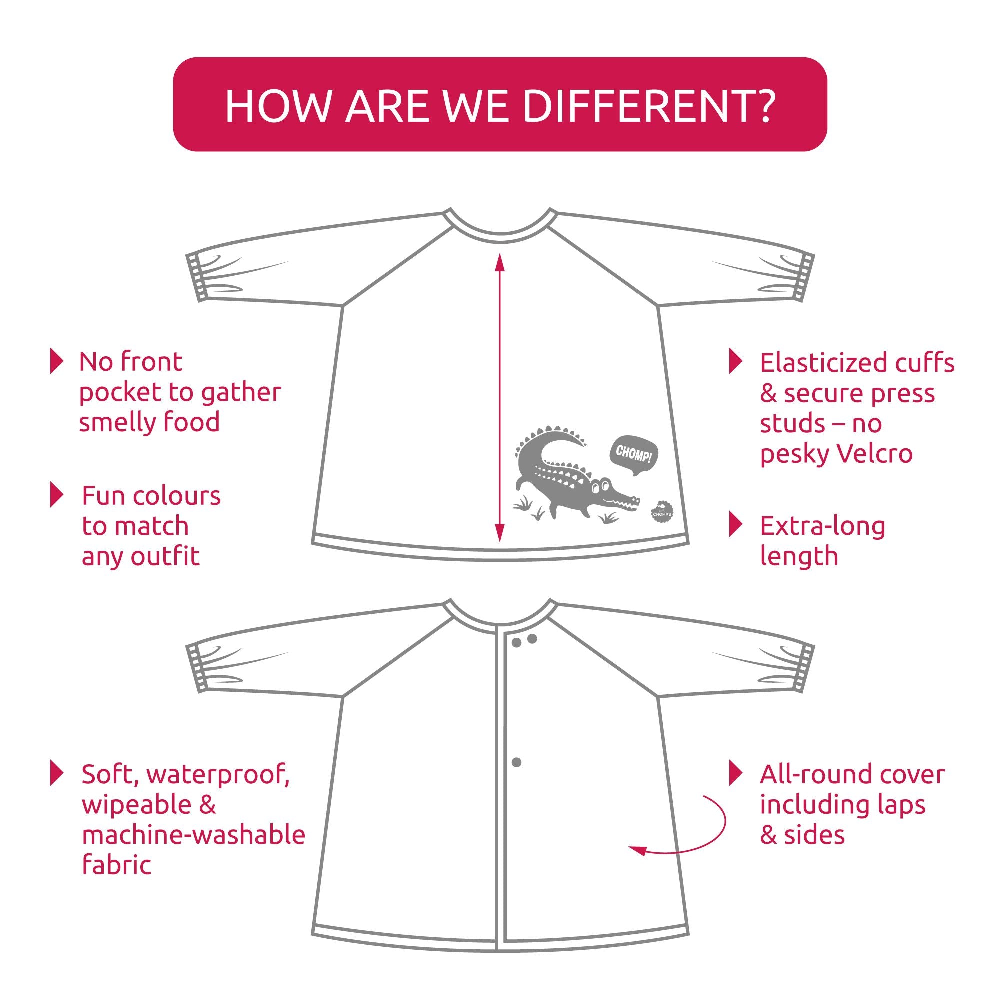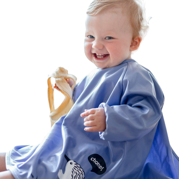Enjoy more fun + less washing while your baby learns to feed themselves with the original Little Chomps Messy Mealtime Smock - a sleeved bib like no other.