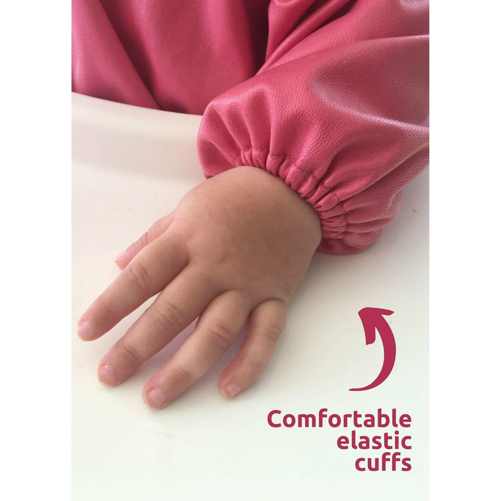 The Messy Mealtime Smock has been designed with your toddler in mind - the lightweight design and all-round cover protect sleeves and laps while still giving them the freedom to move, stretch and reach without being weighed down/held back/restricted.