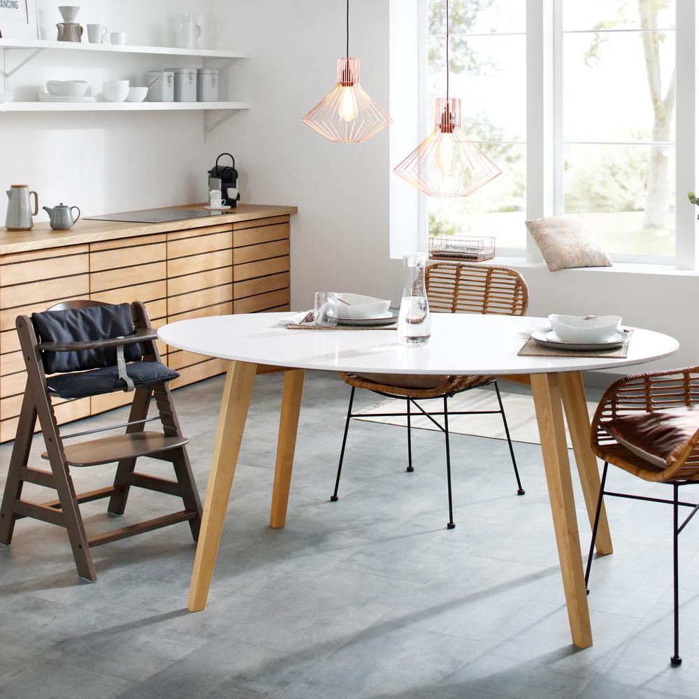 hauck wooden highchairs are all equipped with a crotch belt and a 5-point harness. You can also use both with the highchair seat pad. Your baby is well secured at any age.