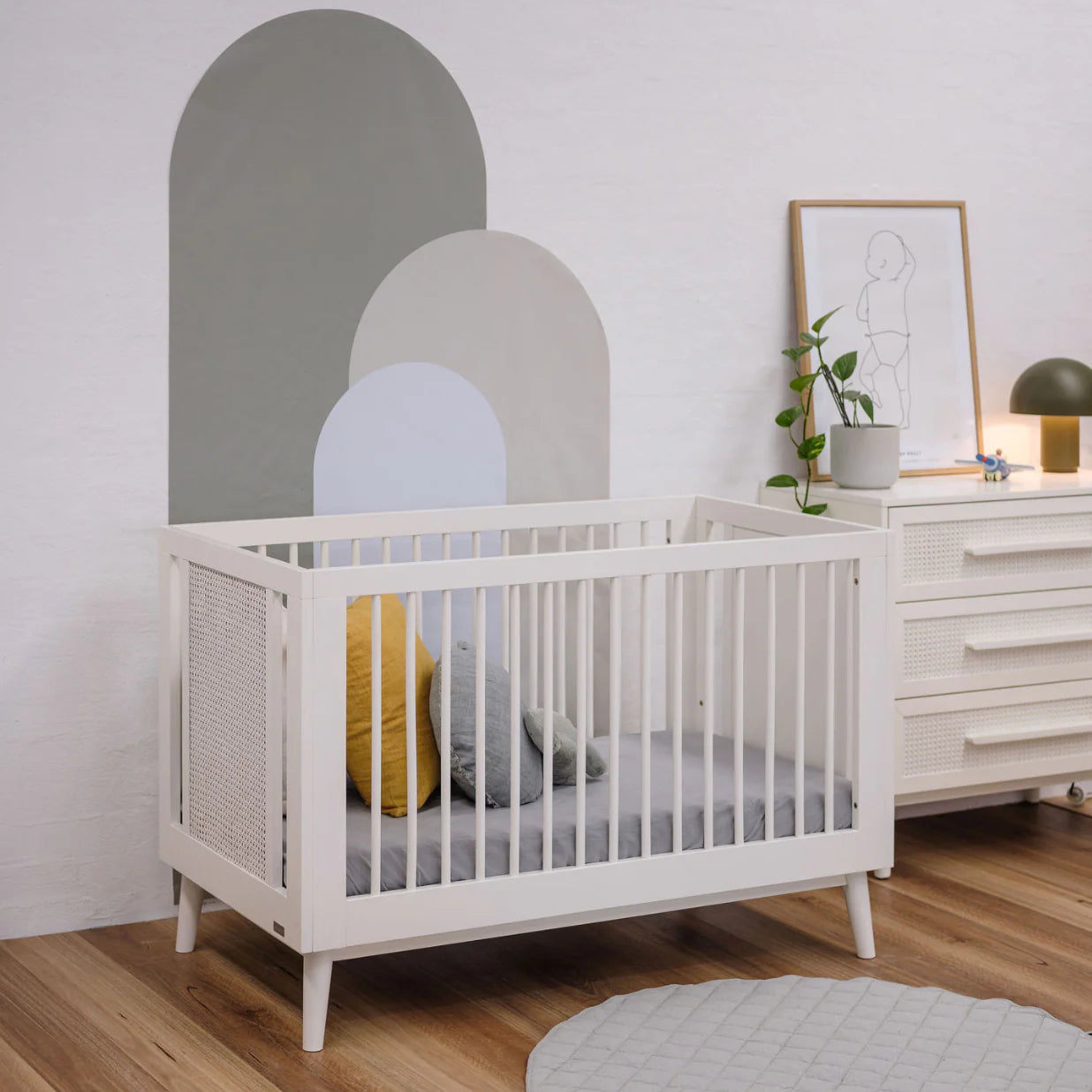 Mid-century modern meets Byron Bay in the stunning Kaya Collection. Blending effortlessly chic tapered legs, smooth lines with rattan accents, the collection unites functionality with tranquillity. Its organic elements give the Kaya warmth, offering versatility to suit your nursery whether it be coastal, boho, traditional or contemporary.