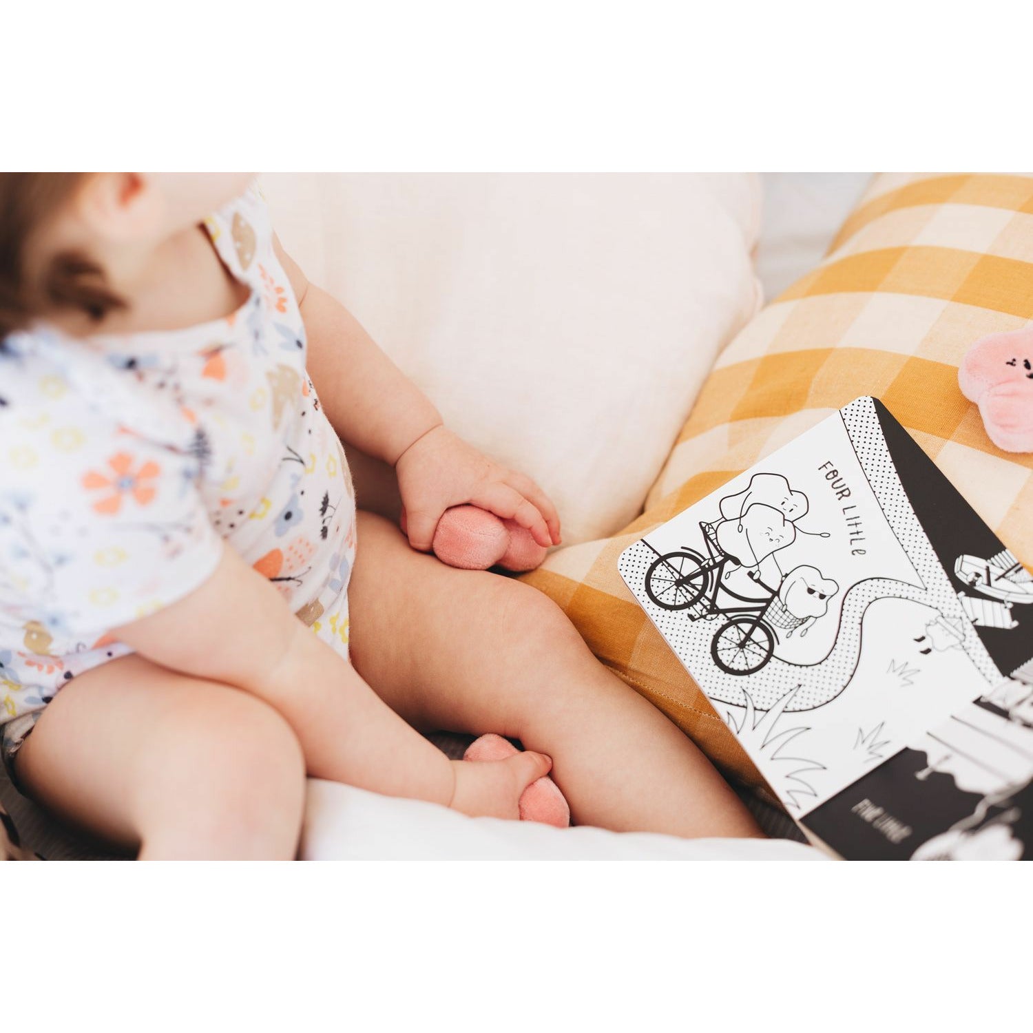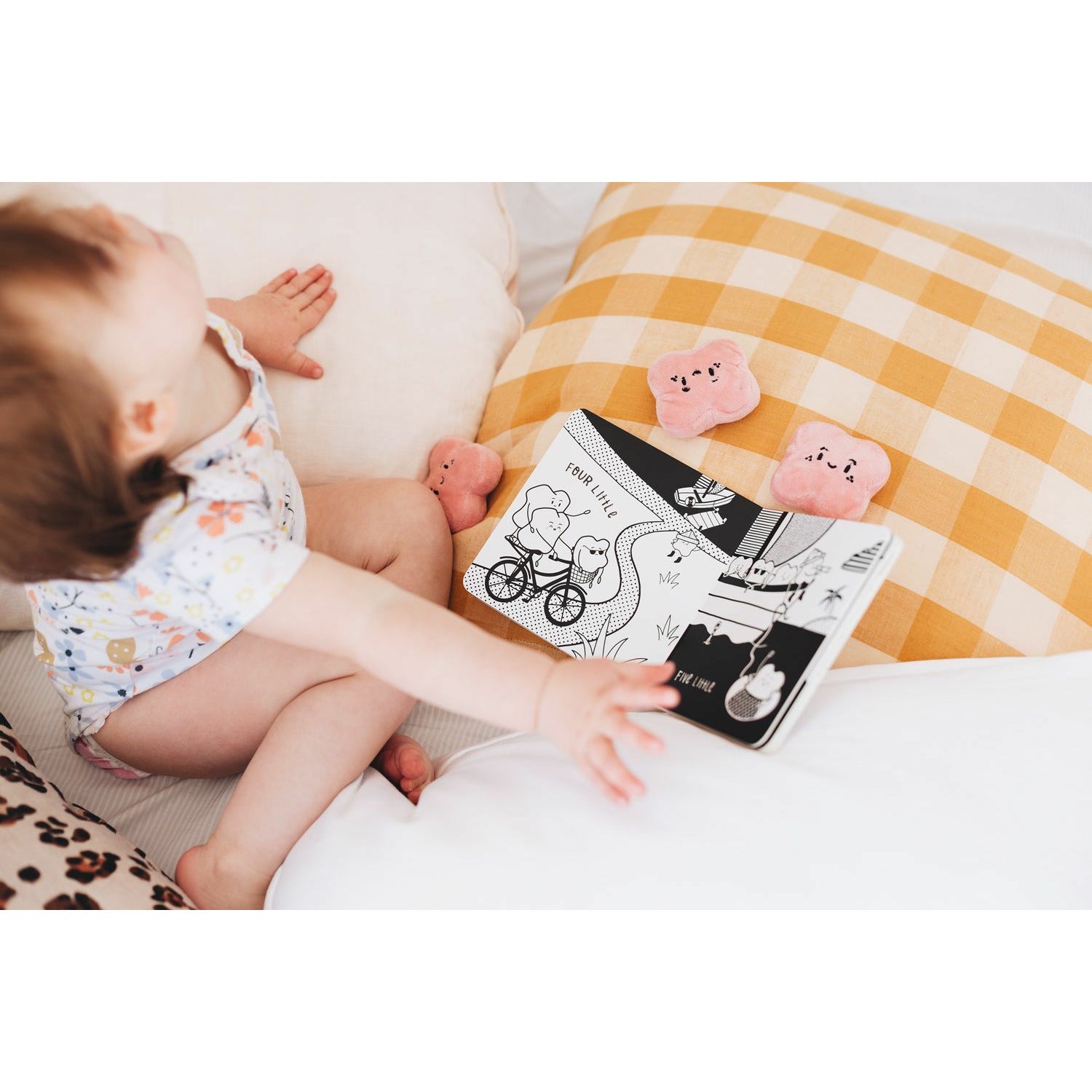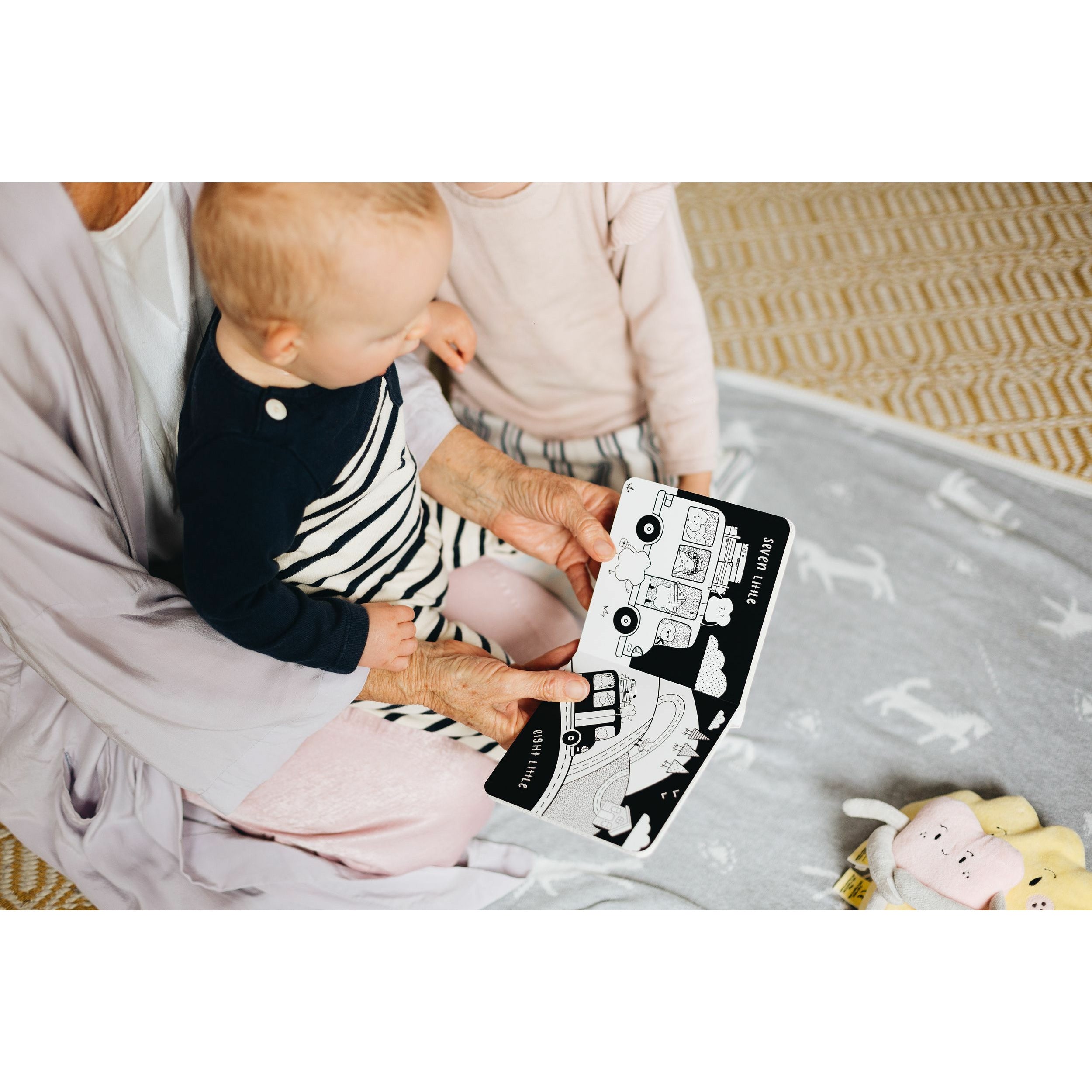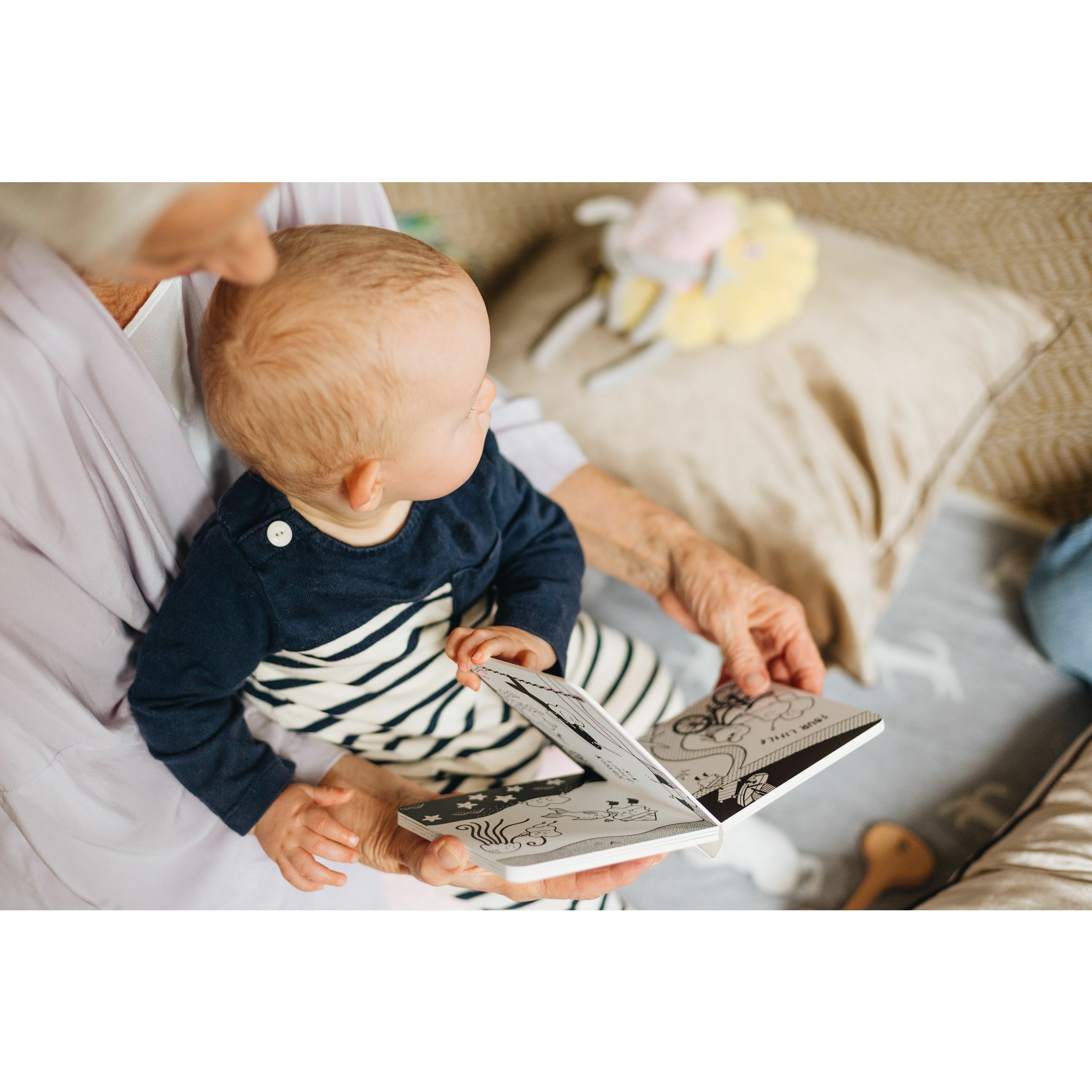 Black and white shapes are proven to capture a young baby’s attention, allowing developing eyes to focus and concentrate, and giving the mind a rest from the overwhelming stimulation of the world.