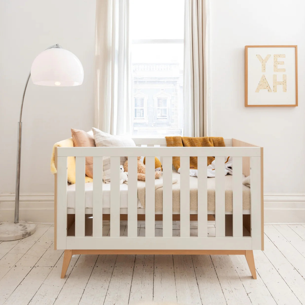The BabyRest Tommi is your sleek, clean-lined companion - perfect for matching any nursery in any home. The hint of Scandi and timber accents allow the design of the furniture to speak for itself. Choose the Oak option for a charming timber look, or keep it clean and subtle with White. The Tommi Cot elevates the aesthetic of your nursery, while growing with your child.