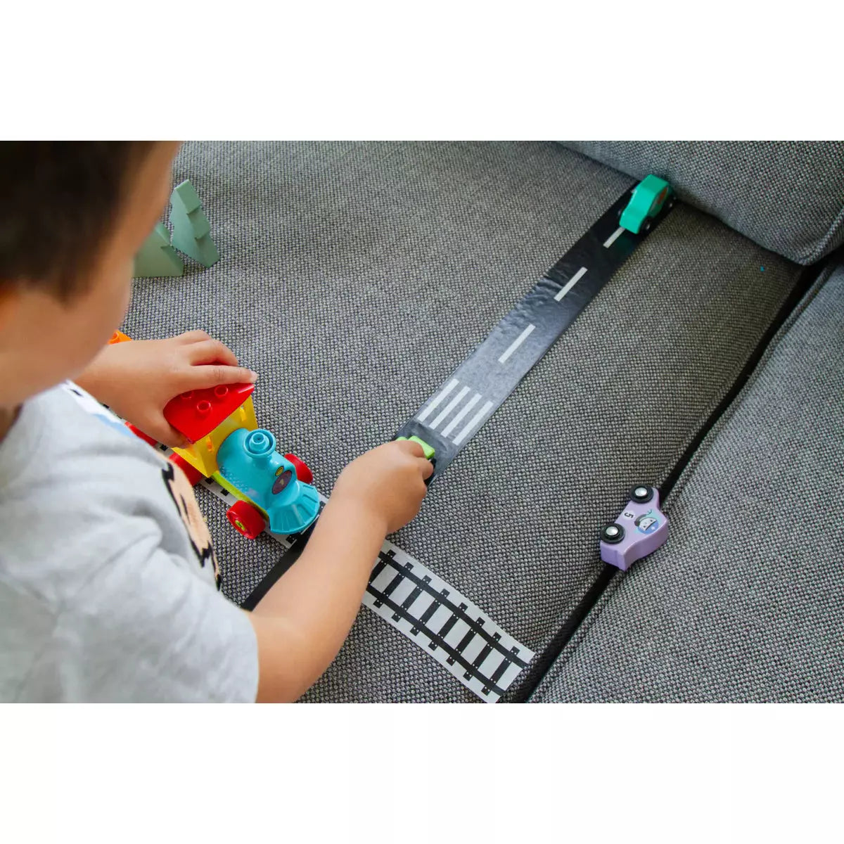 If your little one is really into trains road, they're going to need some track tape. It sticks to pretty much any surface and removes cleanly leaving no residue. Each role is 20 meters long, so you can create a full track wherever you need one to keep your child occupied. Perfect for on the go, think all the places you can't get out a wooden track!