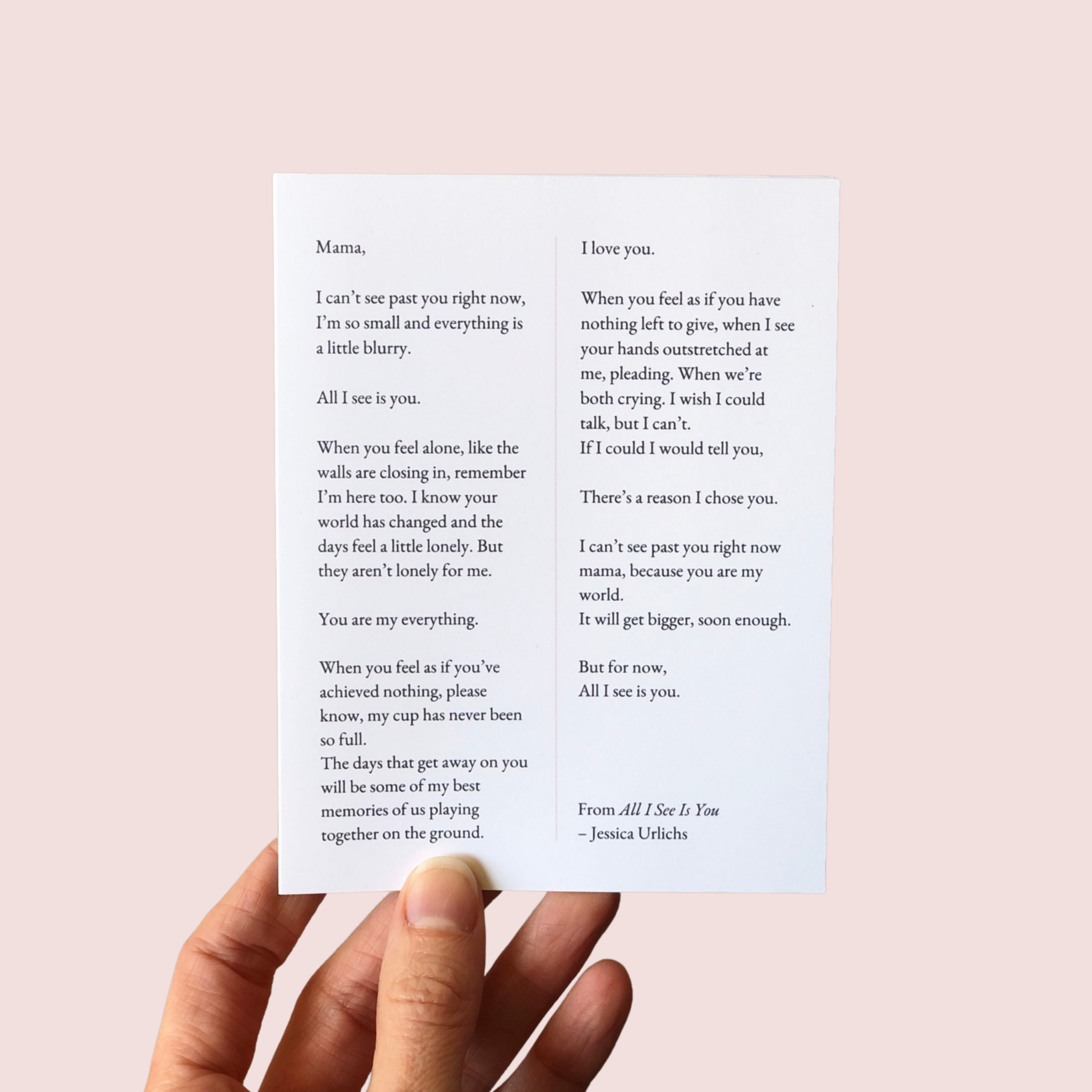 These beautiful keepsake cards were designed in collaboration with poet and author, Jessica Urlichs & Sarah Weeger, owner of Hey Weegs - a greeting card company.