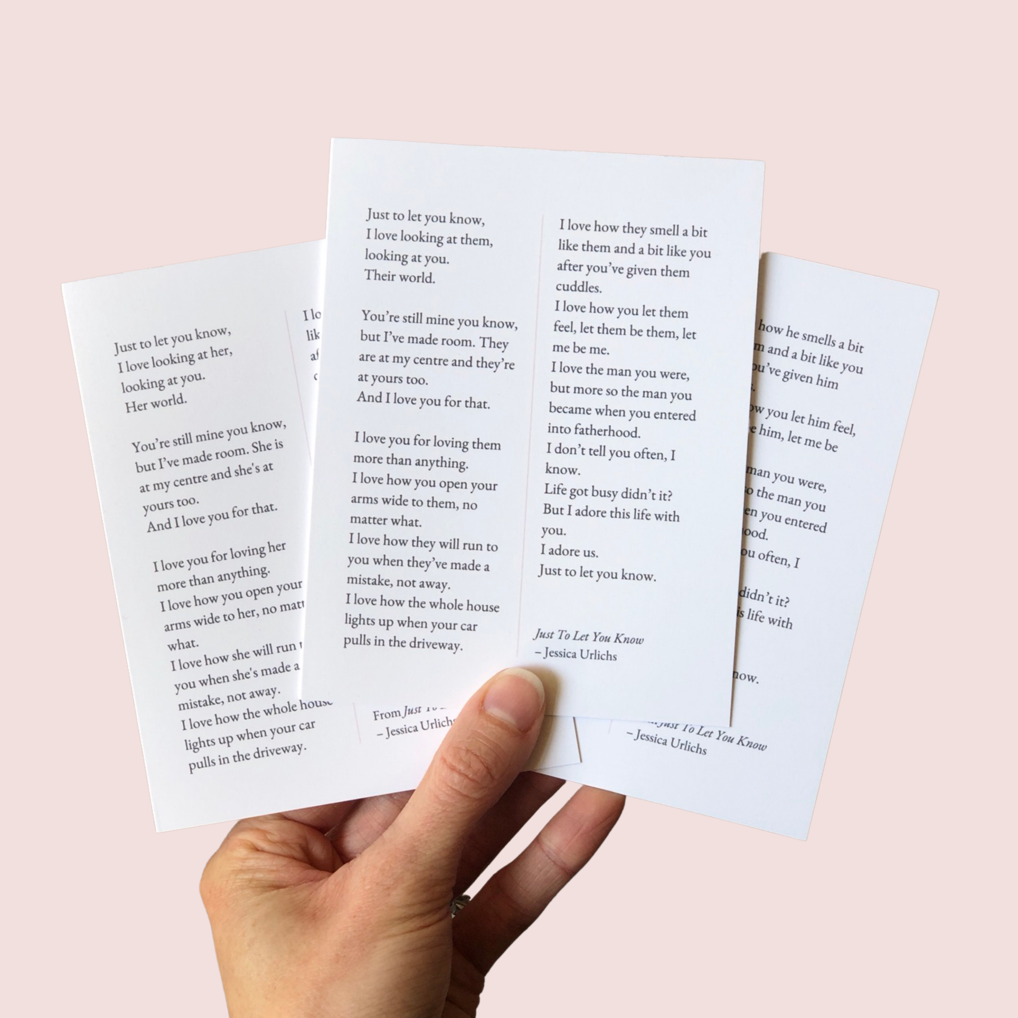 Just To Let You Know - A poem for partners and husbands, the one that says the thing you’ve been meaning and wanting to say but…. Life. Show them you appreciate them with these words. – now available as a keepsake card to give on Father’s Day or any day.